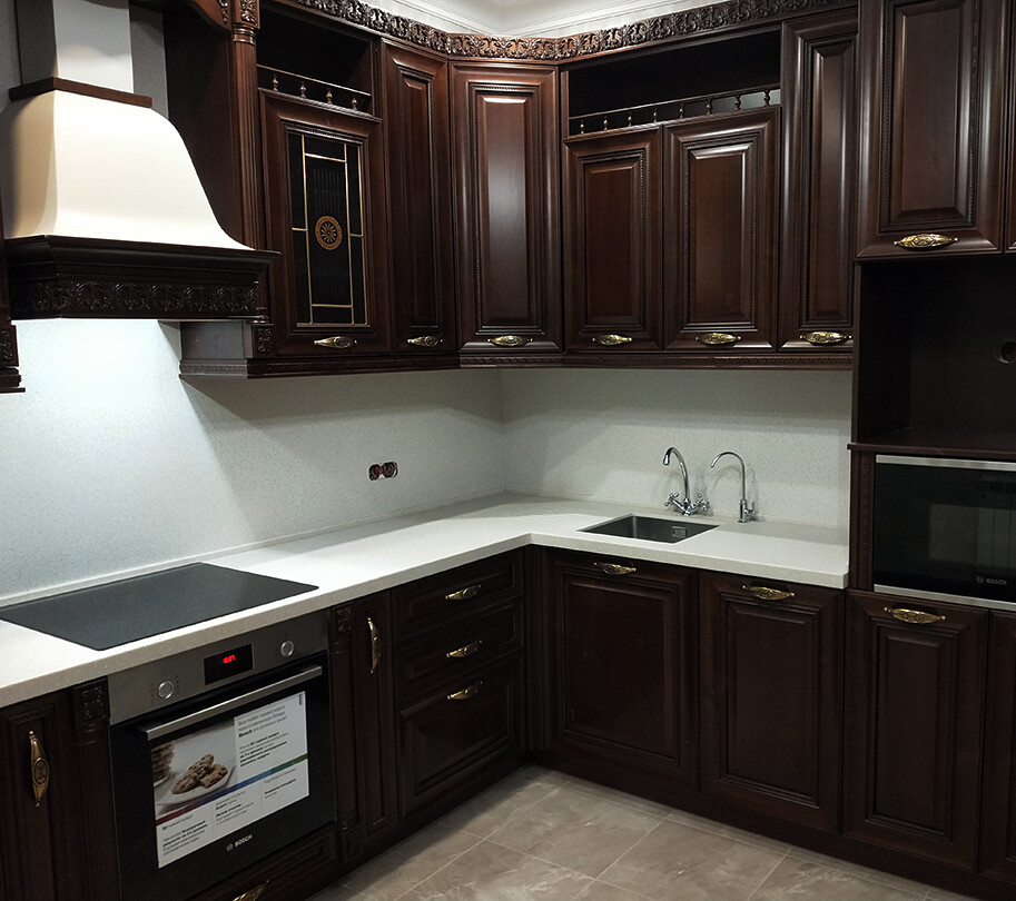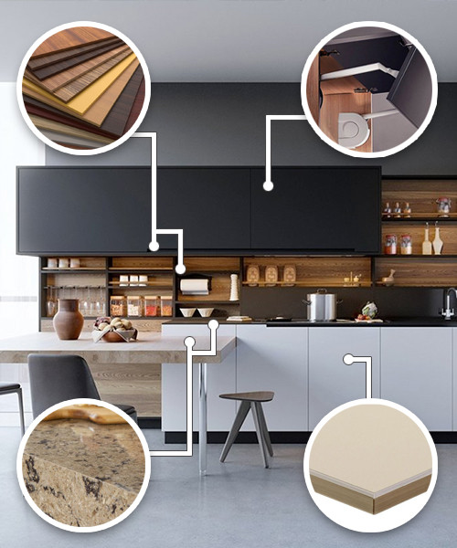 А вот материалы используются самые лучшие из представленных на рынке: корпуса из немецкого лдсп EGGER , фасады из испанского пластика Alvic, итальянских Arpa и CLIFF, фурнитура австрийского Blum, Kessebömer и Hettich, ручки итальянских производителей, искусственный камень крупнейшего корейского производителя Tristone. С такими материалами мы уверены, что они безопасны, качество мебели будет безупречным и кухня прослужит долго.