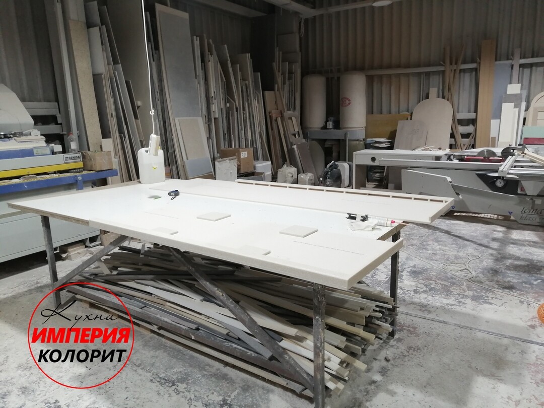 Мы являемся фабрикой, расположены в Московской области. Изготавливаем около 70 комплектов кухонь в месяц.
